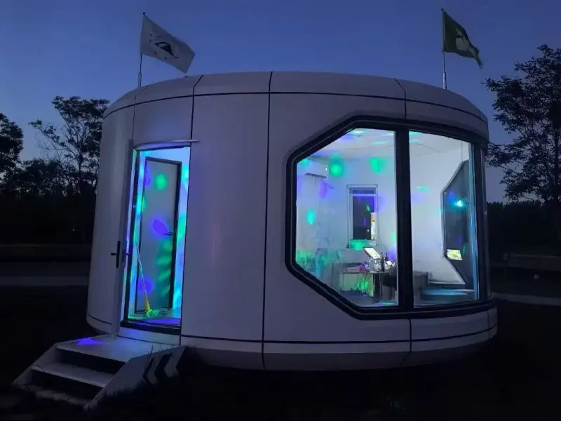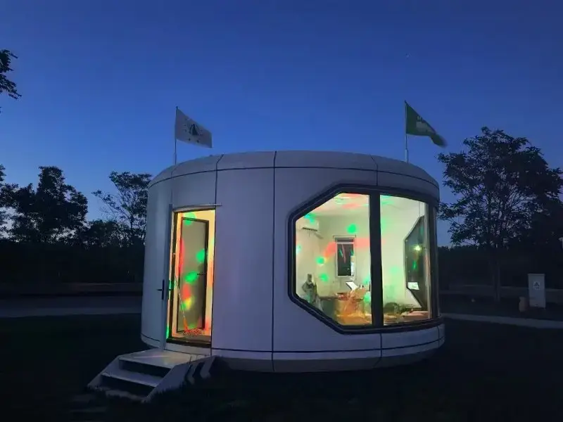 The circular apple pod breaks through the traditional with an innovative 360° circular design, combining aesthetics and functionality. Its streamlined structure not only catches the eye visually but also effectively reduces wind resistance, with wind resistance performance improved by 30%. It is particularly suitable for outdoor scenarios such as beaches and mountains. It adopts a 4mm hot-dip galvanized steel frame and a 2.0mm aviation aluminum shell, weighing only 2.8T (14㎡ model), which is convenient for transportation and corrosion-resistant.