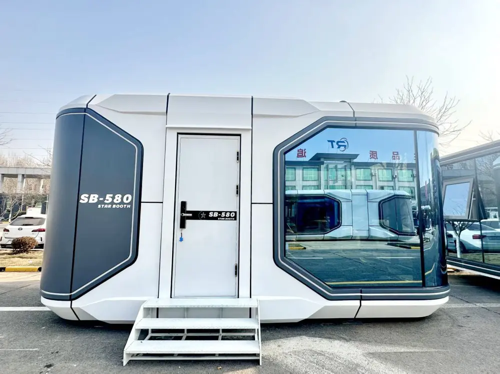 The RT-S30 space capsule has an exterior specification of 5.8m×3.3m×3.2m, with a total floor area of only 19m square meters. It adopts a layout of one room and one bathroom. The main frame is made of 4mm thick hot-dip galvanized steel, and the outer shell is made of 2.0mm aluminum single plate with a metal baking varnish process. It is both aesthetically pleasing and protective, and has excellent corrosion resistance and pressure resistance, ensuring long-term durability. The cabin is equipped with a 6+12A+6 insulating tempered glass curtain wall, which has a remarkable sound insulation and heat insulation effect. The whole-house intelligent control system supports power on by plugging in cards, intelligent voice control and curtain control, enhancing the user experience.