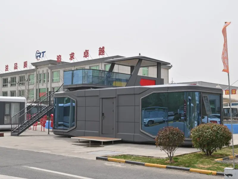 The RT-S71 space capsule adopts a double-layer modular design, with a total area of 65 square meters (38 square meters +27 square meters), which can be flexibly combined. Its main frame continues to follow the 4mm hot-dip galvanized steel standard, but it has added a mobile casters design for easy position adjustment. The cabin is equipped with sockets and USB panels that meet international electrical standards, compatible with electrical appliances from all over the world. The unique “card insertion power supply” system is energy-saving and environmentally friendly, suitable for use as a co-working space or mobile laboratory, meeting the needs of multiple scenarios.